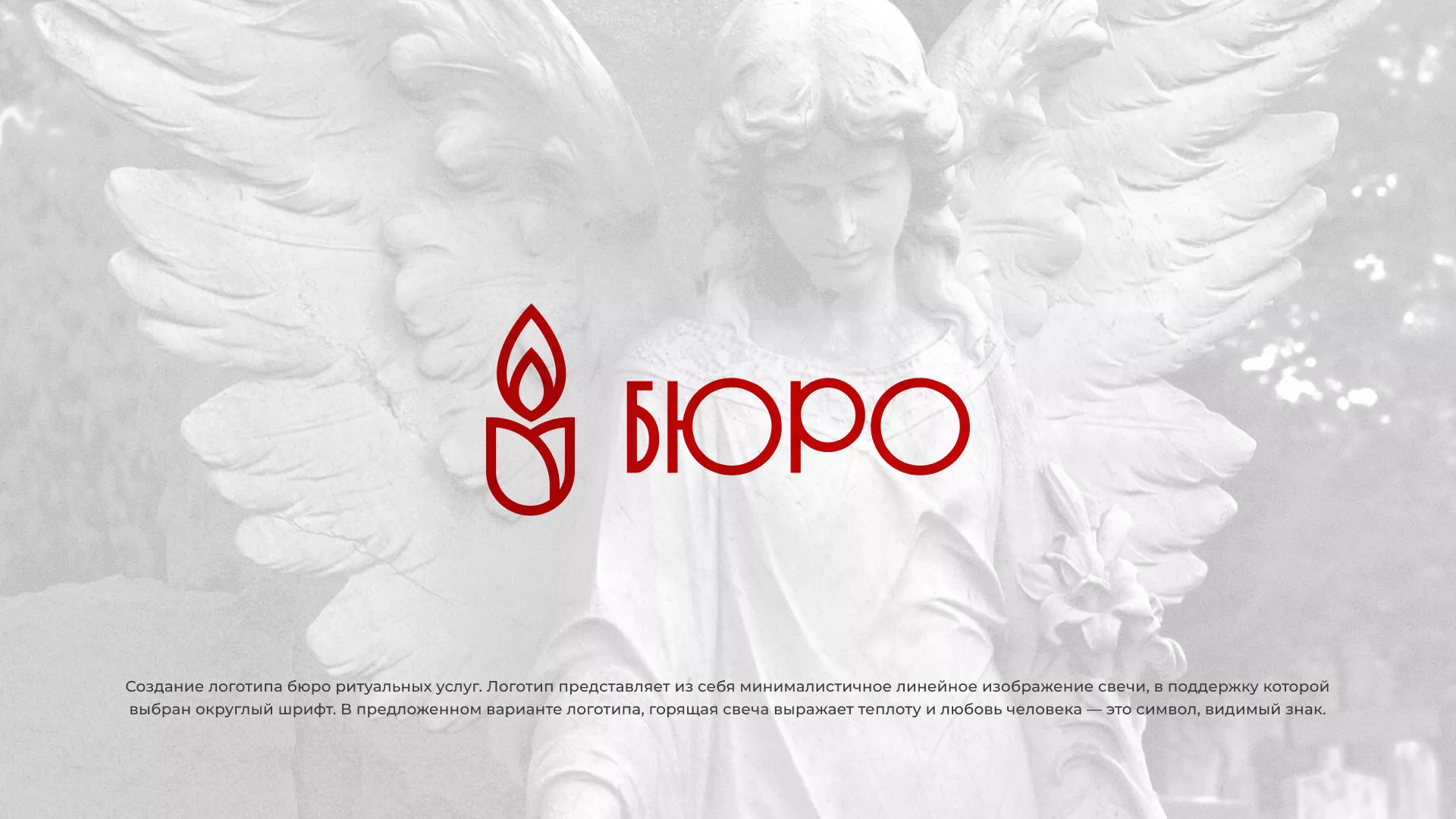 Создание логотипа бюро ритуальных услуг в Томмоте. Логотип представляет из себя минималистичное линейное изображение свечи, в поддержку которой выбран округлый шрифт.